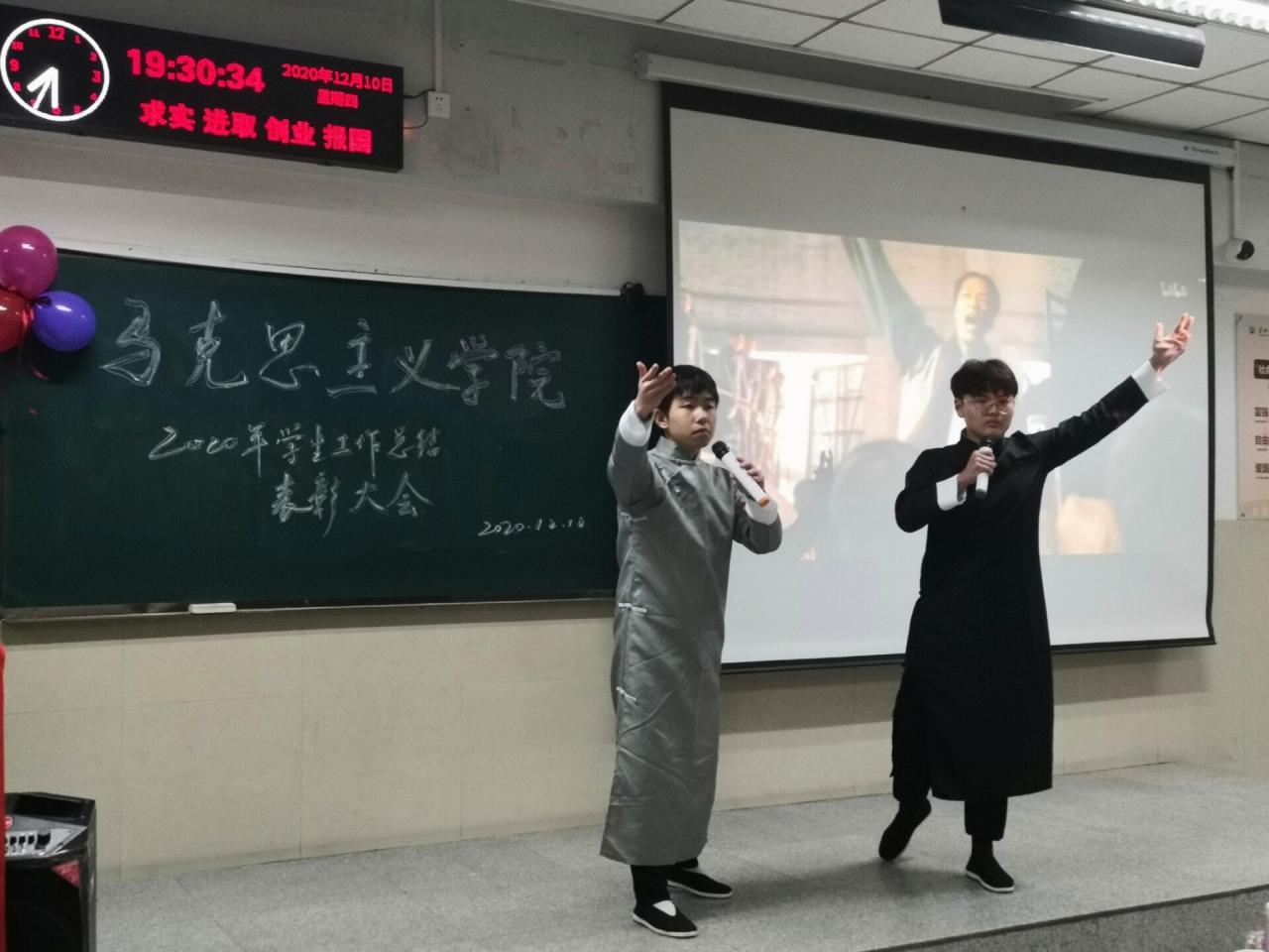 (通讯员 王晓彤)律回春渐,万象更新;艰难困苦,玉汝于成。12月10日晚7点,永利y23455在12教202室举行了2020年学生工作总结表彰大会。学院党委书记吴智勇、党委副书记马小佼、青年教师谭梦媛、学工办主任张云雾、辅导员李敏和学院全体在校学生参加了活动。