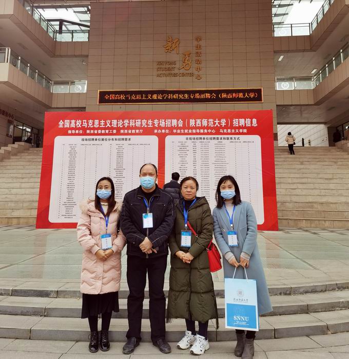(通讯员罗小玉)为贯彻党中央“稳就业”“保就业”的决策部署和“走出去”“引进来”的发展原则,我院院长姜学勤、院办主任徐先荣、思政教师谭梦媛、罗小玉一行于12月28日上午驱车前往西安,参加12月29日举行的全国高校马克思主义理论学科研究生专场招聘会(陕西师范大学)。