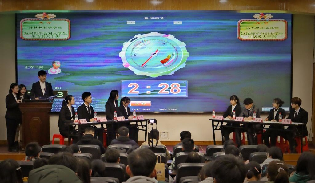 计算机科学学院代表队和永利y23455代表队作为正反双方,围绕“短视频平台对大学生生活利大于弊还是弊大于利”这一辩题展开冠亚之争。