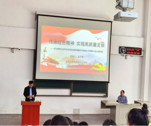 (通讯员谭梦媛)2021年10月28日下午,永利y23455院长姜学勤教授应邀在武汉校区B101以“传承红色精神 实现高质量发展”为题为武汉校区师生作学习贯彻习近平总书记“七一”重要讲话精神专题辅导报告,报告会由资环学院党委书记张科主持,容纳300余人的会场,座无虚席,师生们共同享用了这场精神盛宴。