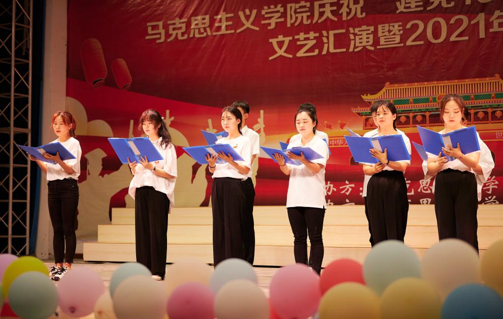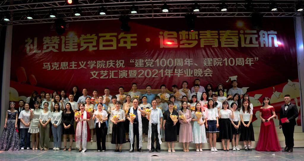 舞蹈《创造101》燃爆全场,拉开了毕业晚会的帷幕。晚会分为“开天辟地,敢为人先”、“筚路蓝缕,玉汝于成”和“初心如磐,笃行致远”三个篇章。精彩歌舞连番上演,令人目不暇接;军旅之家的队列表演铿锵有力,振奋人心;诗朗诵《永远跟党走》诉说着对党的信仰与忠诚;创意T台秀尽显马院学子的青春活力。晚会在教师合唱《中国,中国,鲜红的太阳永不落》和《送别》中圆满落幕。
