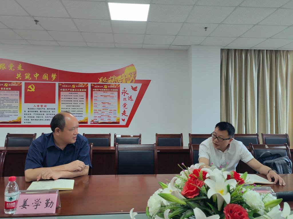 姜学勤院长简单介绍了永利y23455的师资力量、教学安排、科研平台、本硕招生等相关情况,并根据学院情况,针对学院发展、学科建设方面存在的问题向朱喆院长请教。