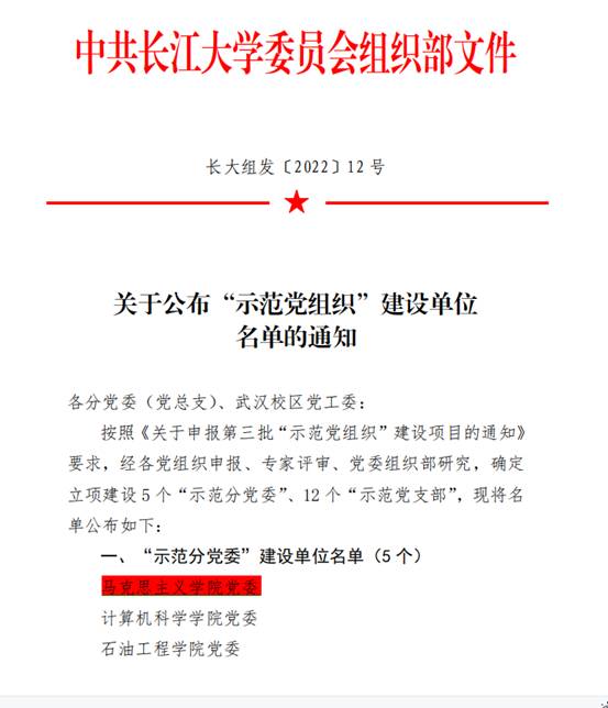 近日,学校组织部下发《关于公布“示范党组织”建设单位名单的通知》,我院党委申报的“示范分党委”获得建设支持。
