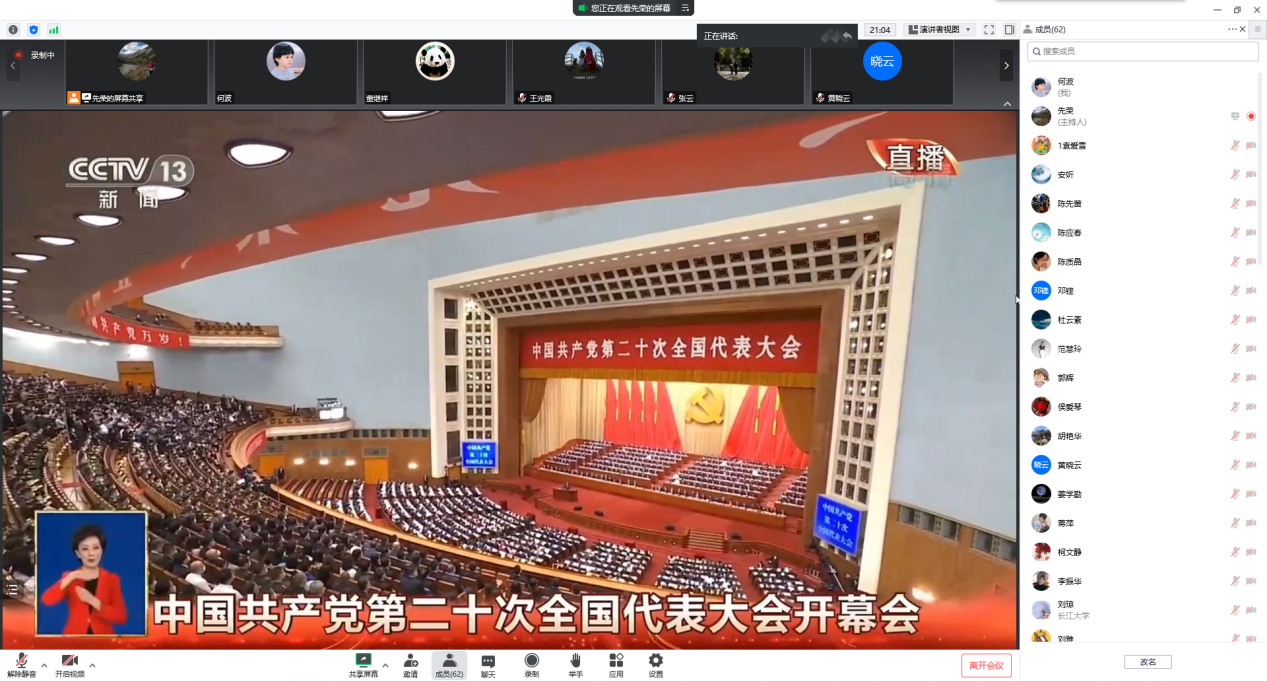 10月16日上午10时,中国共产党第二十次全国代表大会在北京人民大会堂隆重开幕,永利y23455师生齐聚线上,聚精会神地收看了大会开幕盛况。