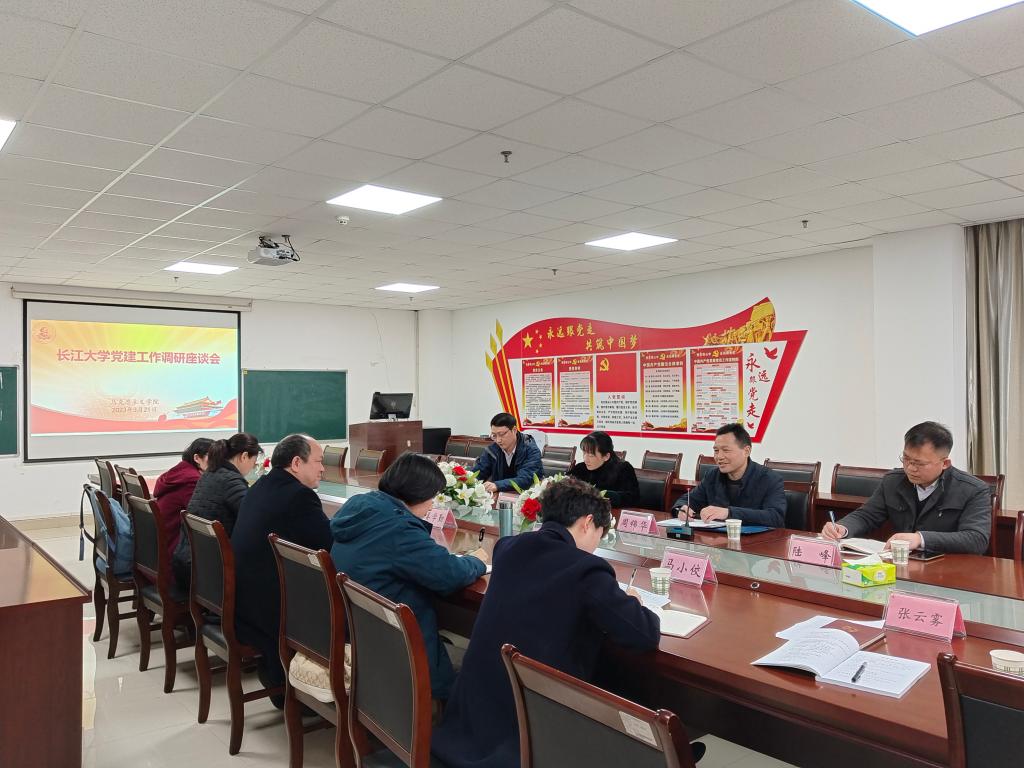 3月21日上午,学校机关党委书记周锦华、校办副主任陆峰,校党委组织部副部长张娟、科长肖彬一行来到我院开展党建工作调研,院长姜学勤、院党委书记刘小燕、院党委副书记马小佼、思政课部荆州支部书记张莉等人参加了座谈会。