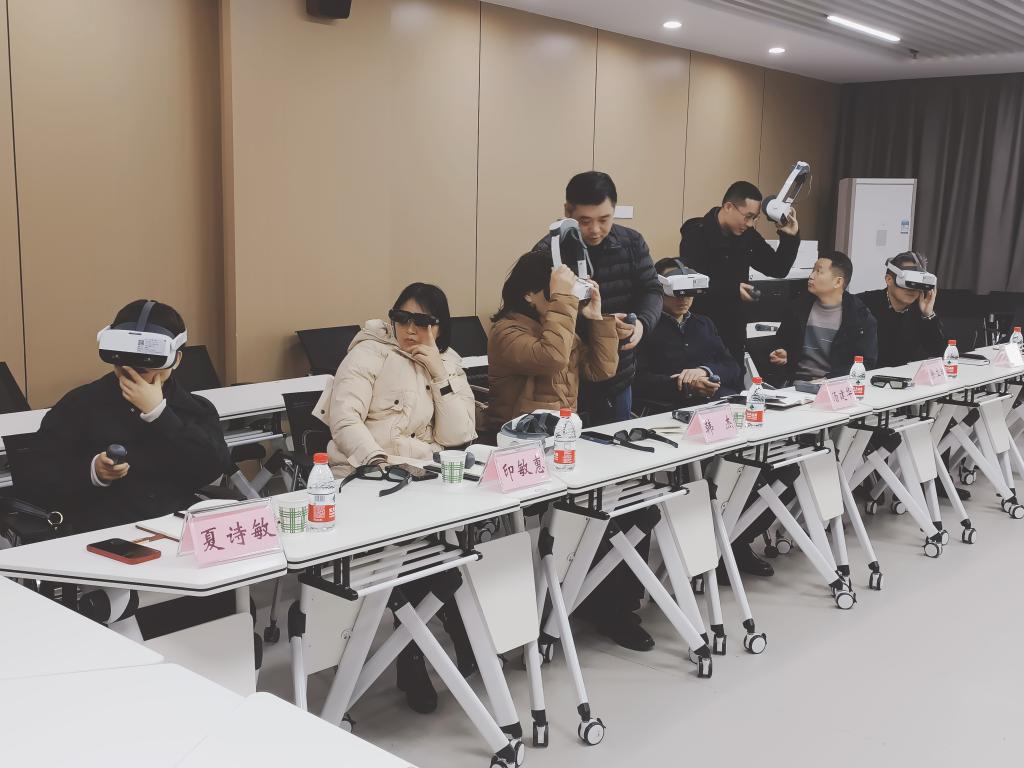 会议中,我院徐骆老师就VR实验室的建造、使用、设备管理及后期运营等多个方面进行了详细介绍。随后,常德职业技术学院的几位老师进行了体验。