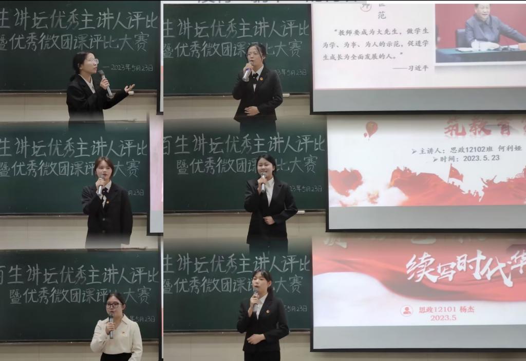 (通讯员 史欣蕊)为学习贯彻党的二十大精神,深入领会习近平总书记关于青年工作的重要思想,5月23日晚7时,永利y23455于12教104室举办2023年“百生讲坛”优秀主讲人评比暨优秀微团课评比大赛。学院党委副书记马小佼、学工办主任张云雾、青年教师陈质晶、辅导员李敏及全体大一学生参会。