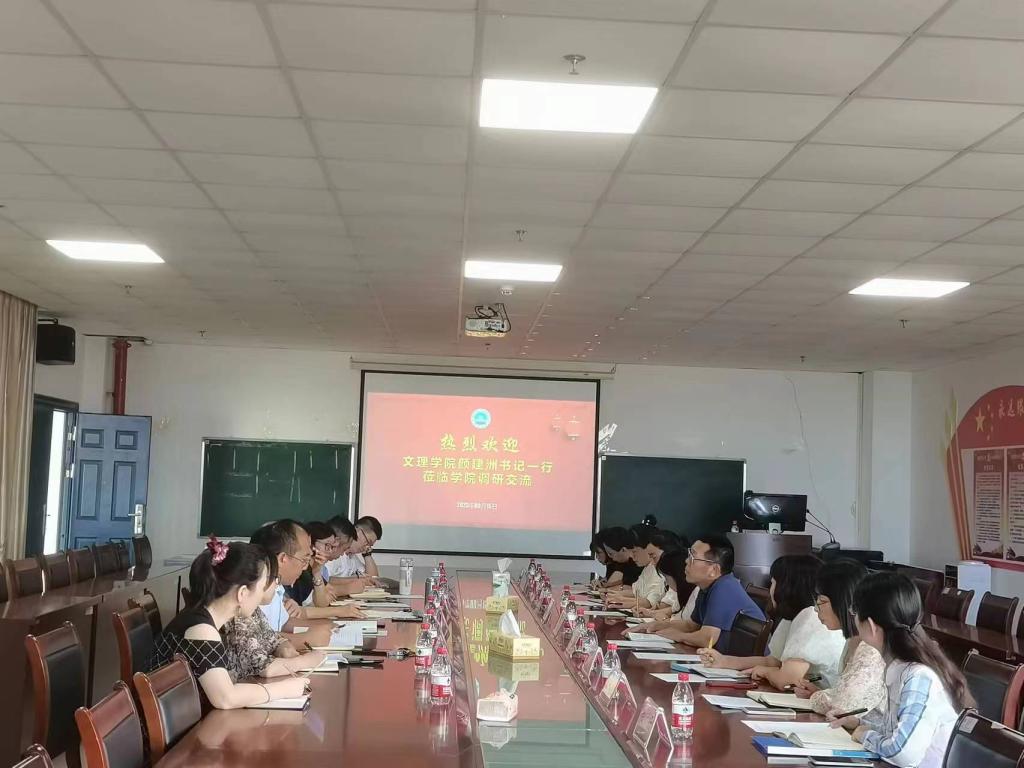 9月15下午,yl23455永利集团文理学院在党委书记颜建洲的带领下,一行10人来我院调研。我院姜学勤院长、刘小燕书记、涂江波副院长、张莉副院长、汤慧珍副书记、系主任徐骆、课程组负责人薛阳和关明参加了座谈会。