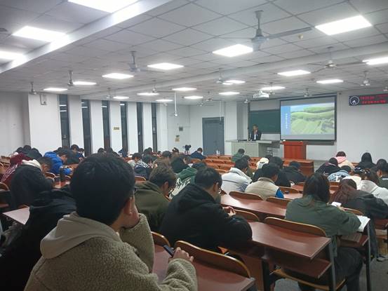 启迪生命智慧,成就生命价值。11月28日晚6时许,武汉校区教学楼B-105教室座无虚席,选课学生齐聚于此,满怀期待地迎接本学期《生命长江·大国能源》课程的最后一讲。晚7时,研究员朱业宏教授走上讲台,激情开讲《生命长江·大国能源》第十讲“长江精神”,以生命栖息地“长江”为坐标带领我们一起思考生命如何安放。