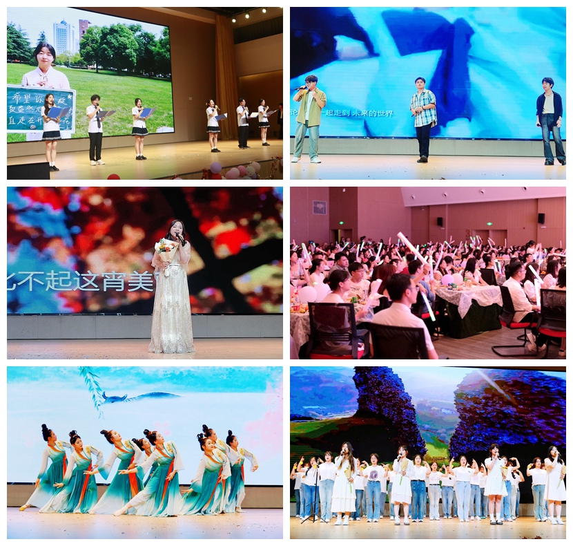 活动进入第二篇章“磨砺•岁月成长”。国风秀《东方霓裳,国风少年》展现了汉服之美,为现场带来古香古色的典雅气息;歌曲《贝加尔湖畔》,空灵悠扬的旋律仿佛营造出第三空间,师生们深深沉浸其中,为之动容;舞蹈串烧《whatever我最红》,动感有力又俏皮可爱,青春的朝气与活力尽显;歌曲联唱《麻烦海芋替我说爱你》,以轻松欢快的曲调,将校园岁月的欢乐传递给大家,勾起毕业生对美好回忆的共鸣;“我可以逆转那时空,化作伴你的清风,穿过幽暗的时空,抚平深海里的梦。” 何波老师浸润温情的演唱,表达了对毕业生同学无尽的爱和祝福。