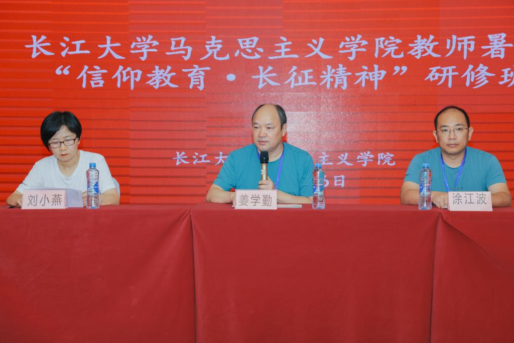 永利y23455院长姜学勤指出,在长征出发90周年之际,学院组织全体思政课教师开展以“信仰教育·长征精神”为主题的暑期研修活动,就是要让思政课教师在研修中接受红色文化熏陶,弘扬伟大长征精神,讲好新时代“大思政课”。他希望全体教师提高认识与站位,以中华优秀传统文化、革命文化和社会主义先进文化为力量根基,守正创新推动思政课建设内涵式发展;要端正学习态度、提升学习实效,在理论教学、现场教学和情景体验式教育中接受思想启迪和精神洗礼,做到理论与实践相结合,历史与现实相结合;要深学细悟、学以致用,从红色资源中汲取精神动力和奋进力量,强化为党育人、为国育才的责任担当。