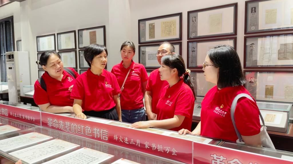(图为“信·荆楚”暑期实践队队员在馆内寻访红色书信)