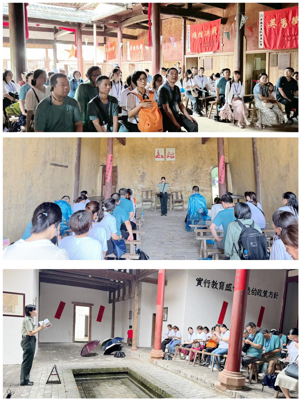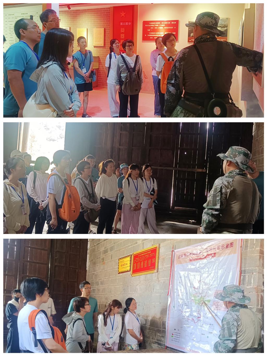 “当年鏖战急,弹洞前村壁。装点此关山,今朝更好看。”7月29日,研修班来到瑞金城北大柏地,在大柏地战斗遗址开展体验式教学“重走长征路”,探寻大柏地战争红色本源,接续走好新时代的长征路。从前村到战壕,全程徒步,用心感受革命先辈的热血赤诚。在前村,学员驻足参观大柏地战争革命遗址,面对墙上弹坑,聆听红色故事,感受先烈革命精神;在战壕,学员登上战壕遗址,集结高呼胜利,矢志传承革命精神。