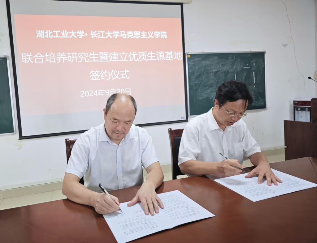 最后,姜学勤院长和丁银河院长分别代表永利y23455和湖北工业大学永利y23455共同签订了硕士研究生联合培养及生源基地协议书。双方就研究生联合培养方案,师资力量合作及学术交流等领域达成一致,同时双方表示将以此次协议签订为契机,探索未来长期有效的合作机制,共同推动研究生教育事业的发展。