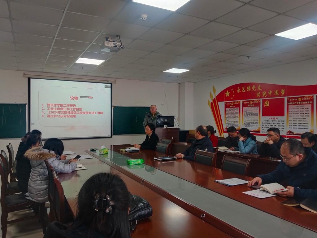 随后,学院党委书记刘小燕对《永利y234552024年度奖励性绩效工资发放办法》作了详细解读,强调了办法修订的背景、过程以及分配制度改革导向,办公室主任徐先荣讲解了工作量计算方法,通报了分配情况。