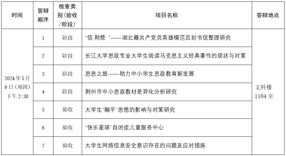 根据学校《关于2024年大学生创新创业训练计划项目结题验收、阶段检查工作的通知》要求,结合我院实际情况,现将我院2024年大学生创新创业项目阶段检查及结题验收现场答辩安排如下: