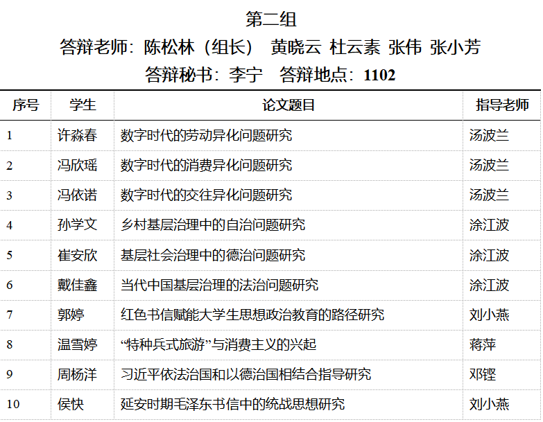 1.学生应根据分组情况,于2026年04月22日下午3点前向所在答辩组学生组长(第一个汇报的学生)提交目前已经撰写的毕业论文(无需写完)纸质X(X=小组评委老师线下人数)份,组长收齐后按答辩顺序放置各答辩会议室,供评委教师审阅。有线上评委的小组需收齐电子版文献综述打包发给线上评委(文件命名:答辩序号+姓名+论文题目)