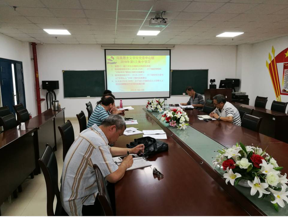 永利y23455于2018 年6月8日在文科楼1104室举行了党委理论学习中心组第五次集中学习,学院总支委员、支部书记和系部主任参加了学习会,会议由党总支书记吴智勇主持。