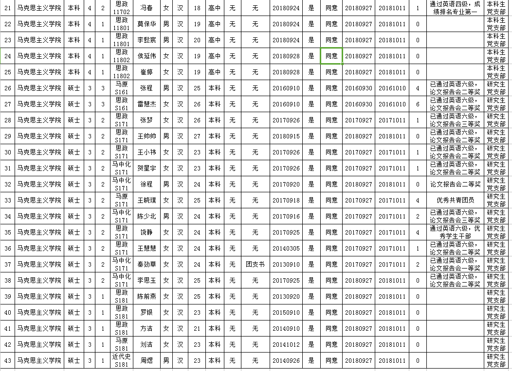 经支部委员会研究确定,报分党委(党总支、党工委)审查同意,拟确定(或认定) 郑亚岚 等 43 名同志为入党积极分子,特在全院范围内进行公示。
