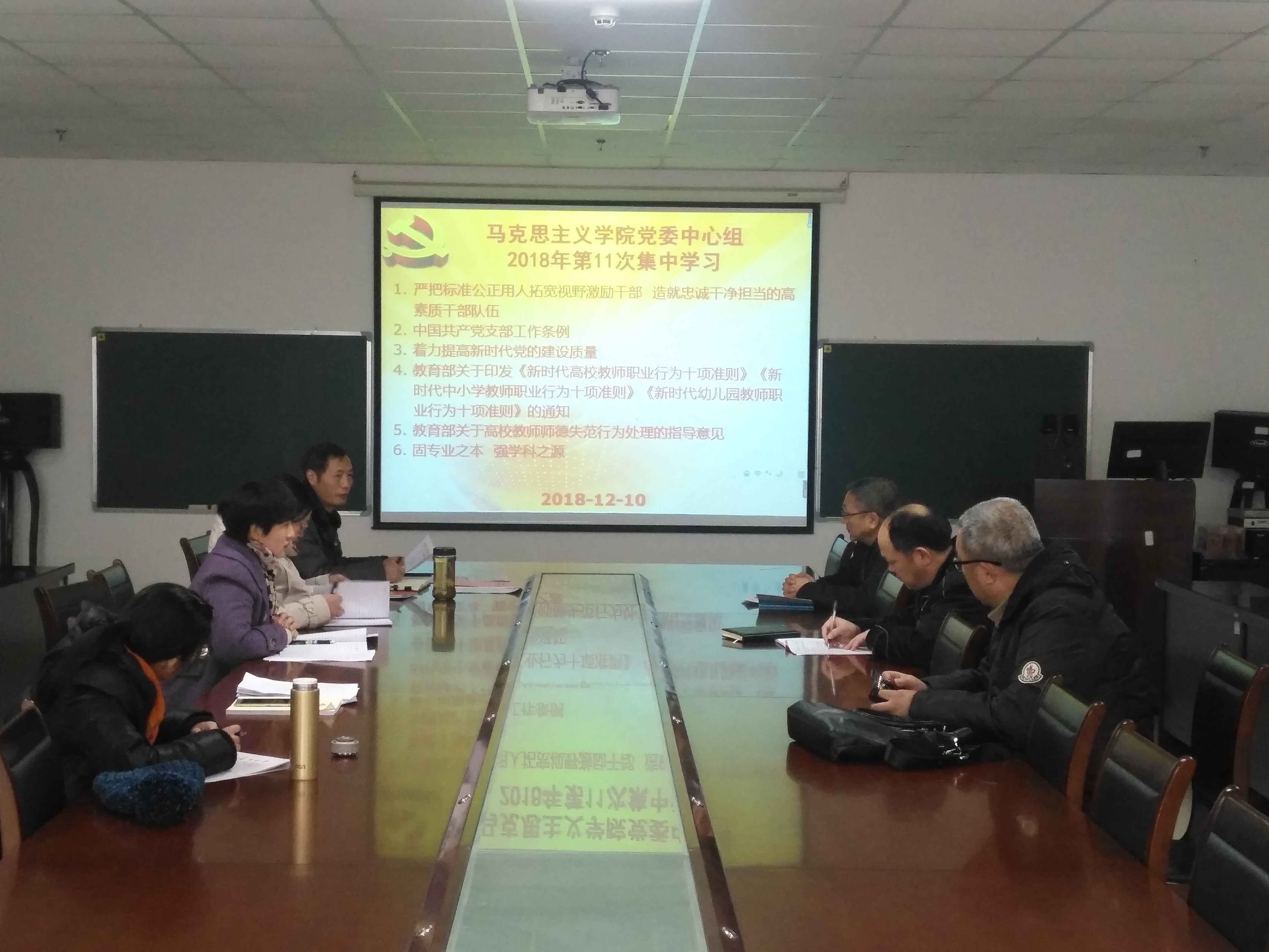 永利y23455于2018年12月10日在文科楼1104室举行了党委理论学习中心组第十一次集中学习,党委理论中心组成员及各支部书记参加了学习会,会议由党总支书记吴智勇主持。