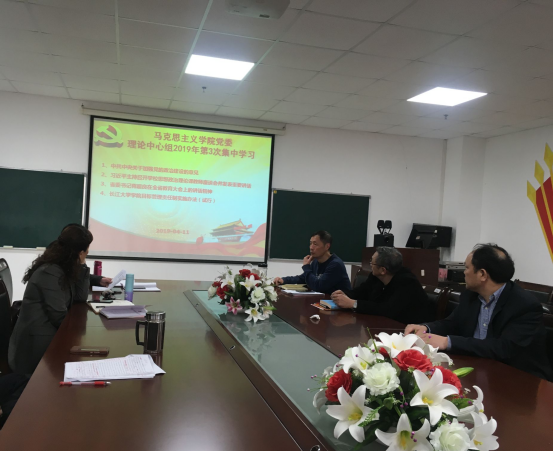 2019年4月11日,永利y23455党委理论学习中心组在文科楼1104室组织了第三次集中学习。学院党委委员参加了本次会议,会议由分党委书记吴智勇主持。