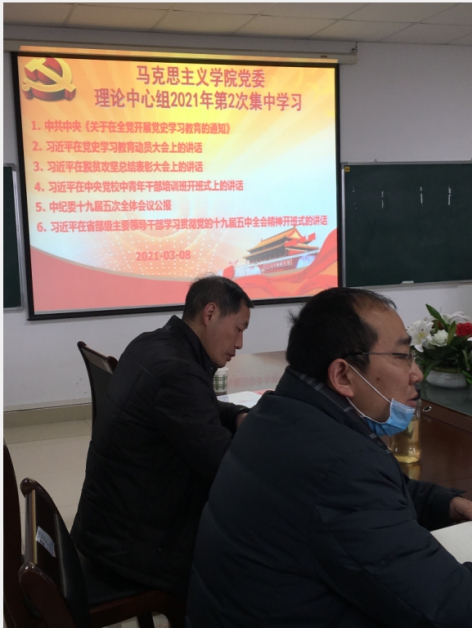 2021年3月8日,永利y23455在文科楼1104室开展了本年度党委理论学习中心组第二次集中学习。学习活动由院党委书记吴智勇主持。