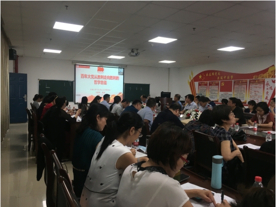 为深入推进习近平总书记“七一”重要讲话精神进头脑,7月12日,永利y23455在文科楼1104会议室开展学习贯彻习近平总书记“七一”重要讲话精神的专题党课。永利y23455全体党员教师参加了会议。