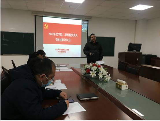 为切实贯彻落实新时代党的建设总要求,持续推动全面从严治党向基层延伸,2022年1月6日,永利y23455召开2021年度党支部书记述职评议会,对基层党组织书记抓党建工作进行述职评议和民主测评。学院党委委员、各支部委员、全体教工党员参加会议。