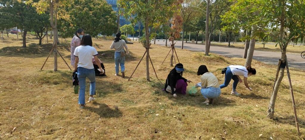 最后,党支部以下沉社区集体劳动的方式积极响应湖北省第十二次党代会的“五共理念”,共同缔造美好校园环境。老师们来到草坪上拔杂草、捡白色垃圾,美化校园环境,一边劳动一边交流,满满的组织归属感和幸福感。