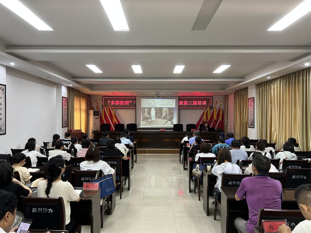 (通讯员周思雨)9月8日,沙市区胜利街道“多彩胜利”干部能力提升研修班第三期顺利开讲,该街道在家班子成员、机关社区党员干部、预备党员以及胜利市场监督管理所、胜利街派出所、综合执法中心代表约70人参加。