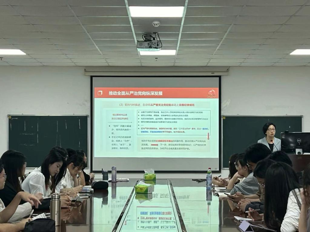 本次党课,刘书记围绕新修订的《中国共产党纪律处分条例》作解读。她从《条例》修订的背景和特点入手,阐释了《条例》修订的重大意义,逐句逐条领学了《条例》全文,并重点围绕党的政治纪律、组织纪律、廉洁纪律、群众纪律、工作纪律和生活纪律等六类纪律的106条负面清单进行详细解读,列举了生活中的案例便于理解。她希望同学们要原原本本学、结合实际学、带着问题学,真正领悟党纪学习教育目标要求,做到学纪、知纪、明纪、守纪,把遵规守纪刻印在心,内化为日用而不觉的言行准则。