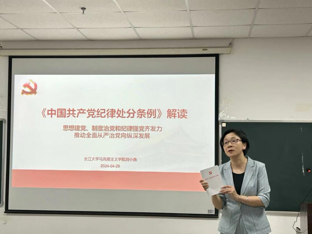 (通讯员 冯定琴 摄影 徐佳悦)为深入学习贯彻习近平新时代中国特色社会主义思想,推动党纪学习教育走深走实,4月29日下午,永利y23455在文科楼1104室举行党纪学习教育专题党课。学院党委书记刘小燕为全院学生党员、入党积极分子授课。