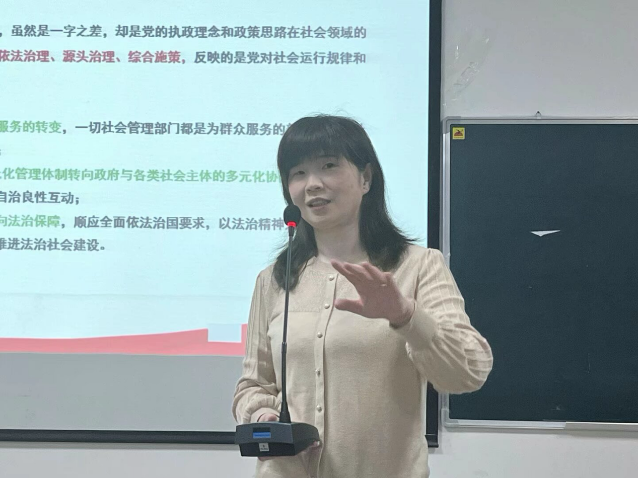 讲座现场,肖慧教授紧密结合党中央、各级党委社会工作部的工作动态、社会热点和自身社会服务经验进行分析,深化同学们对主题的理解,并结合国家社会科学基金社会治理领域立项和我院学生的科研工作实际,与学生互动,引导大家关注社会治理领域的热点问题,为将来的科研以及公务员备考奠定基础。