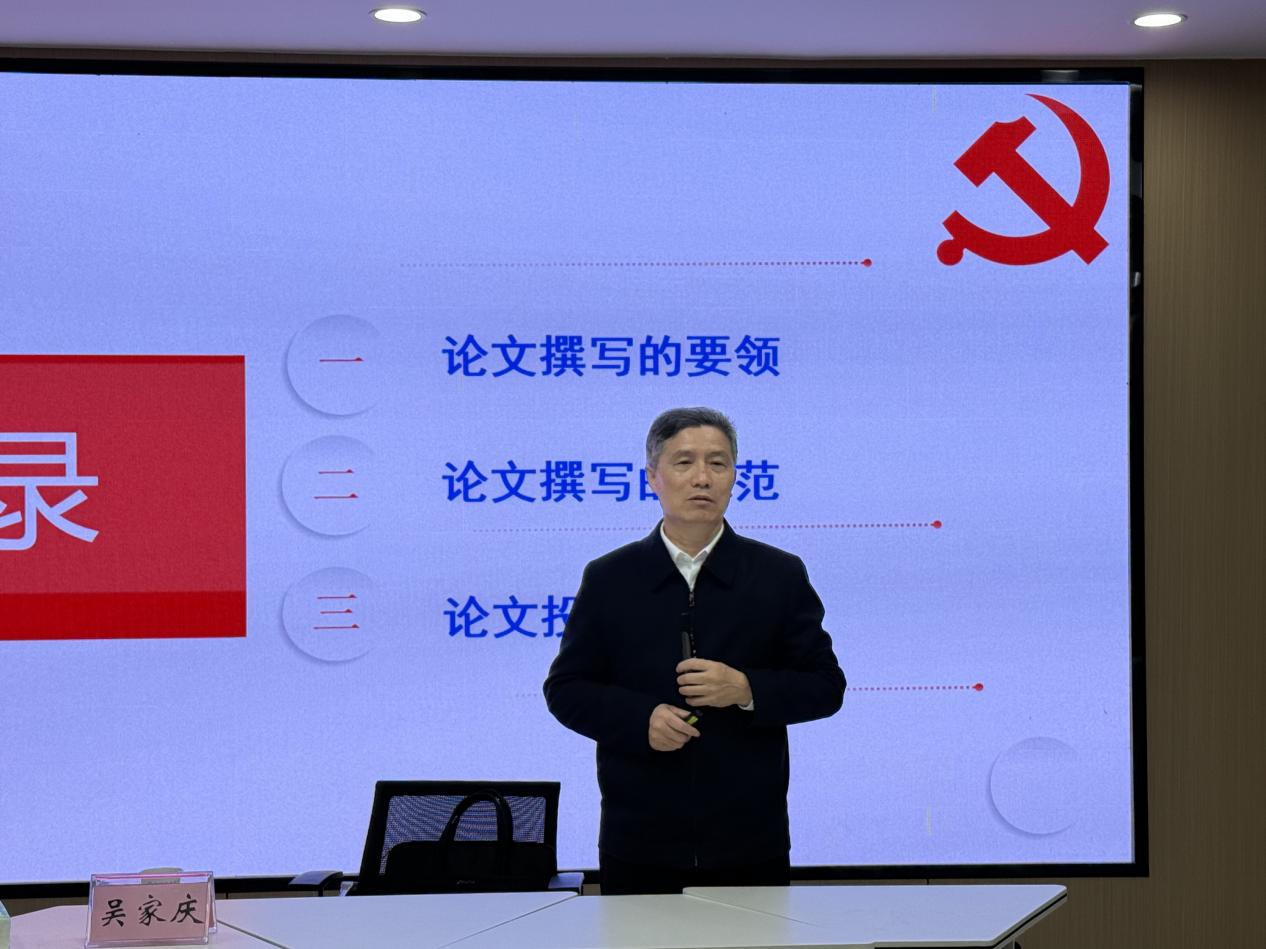 (通讯员 刘诗雨 汤羽彤)论文撰写明规范,笔墨铸魂育真才。12月1日晚,永利y23455于文科大楼1008室举办“思政教育五十年”系列学术讲座2025年第十二讲。本次讲座特邀湘潭大学永利y23455教授、博士生导师吴家庆主讲,他以《学术论文撰写的要领与规范》为题,结合自身数十年学术研究与论文撰写的丰富经验,为师生带来一场兼具指导性与启发性的学术盛宴。讲座由学院副院长涂江波主持,30余名师生参与聆听。
