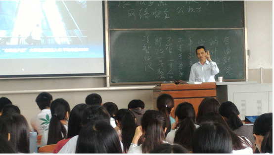 四个班152位同学到课的课堂,在朱书记近两个小时的精彩讲授过程中,掌声不断,互动不止,同学们认真听课,踊跃回答问题。最后,下课时间已经过了,朱书记在同学们热烈的掌声中结束了这一堂课。
