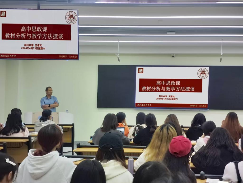 (通讯员:刘若曦)为帮助学生深入了解高中思政课教材与教学方法,4月13日上午,永利y23455于16教A312室开展教学论坛第五讲。本次讲座由荆州中学高级教师王孝文担任主讲,学院本科生以及学科教学(思政)专业研究生参与讲座。