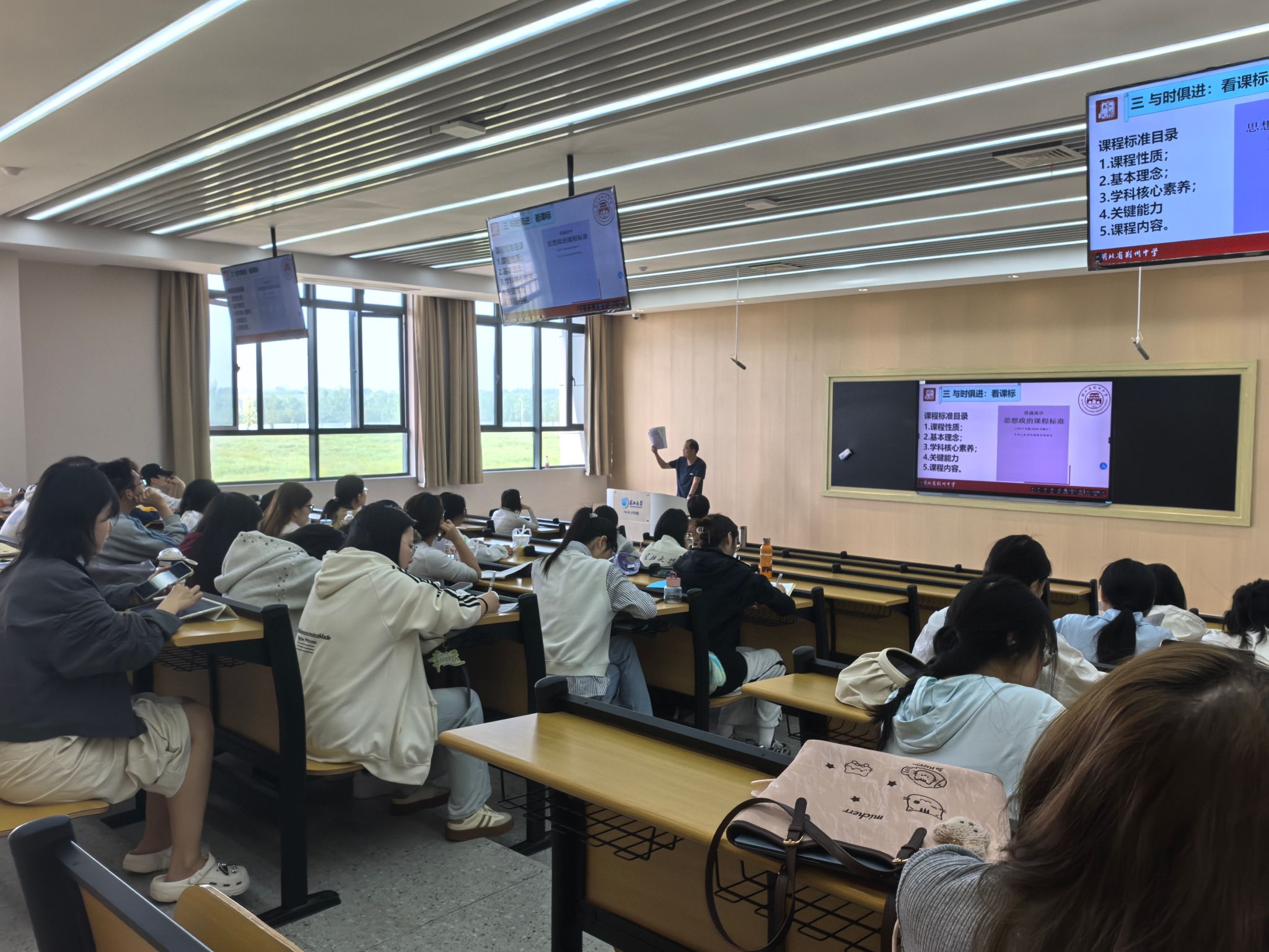 王孝文打破传统单向讲授模式,以“放下手机、专注课堂、学有所获”的课堂倡议开场,引导同学们快速进入高效学习状态。他结合新课标要求与中学思政教材内容,系统梳理了“科学立法”主题的教学背景与育人价值,帮助同学们把握当前法治教育教学的改革方向与核心要求。