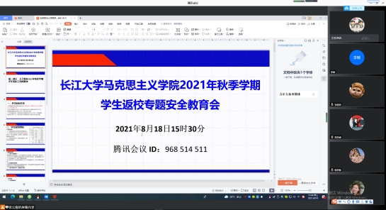 思政11901班于8月19日21:00开展安全教育主题班会,会议邀请了班主任李敏老师参加。