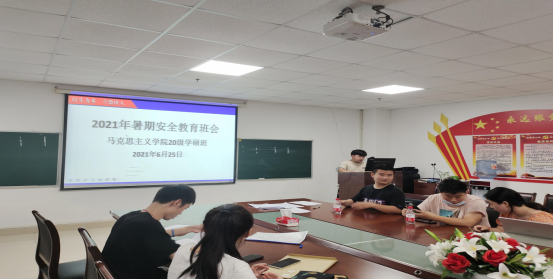 6月25日,2020级学硕班级于文科大楼1104开展暑期安全教育班会。班长李天赐对学院暑期安全教育工作进行简要介绍,并组织班级全体同学签署暑假安全责任告知书。