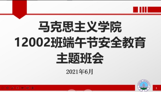 6月9日晚,思政12002班于腾讯会议于召开主题班会。班长张圣文从防溺水、运动安全教育、防电信诈骗三方面展开安全教育主题班会,并对班级内留、离校学生人数作统计。此外,面对即将到来的英语四级和期末考试,他将舞弊后果告知同学们,告诫大家要秉承诚信精神、切勿作弊,并于班群下发相关文件指导同学们填写相关表格信息。