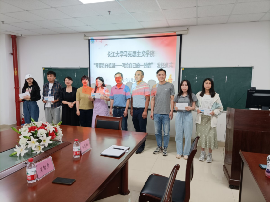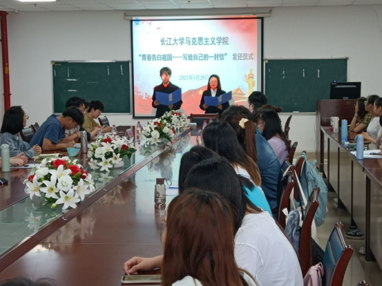 为庆祝中国共产党成立100周年,抒发学生的爱国爱党情怀,永利y23455于2021年5月28日在文科楼1104室举行了“青春告白祖国—写给自己的一封信”交还仪式。学院党委书记吴智勇、副书记马小佼、2019级本科生导师代表张志超副教授、辅导员李敏、辅导员张云雾老师以及全体2019本科生参会。