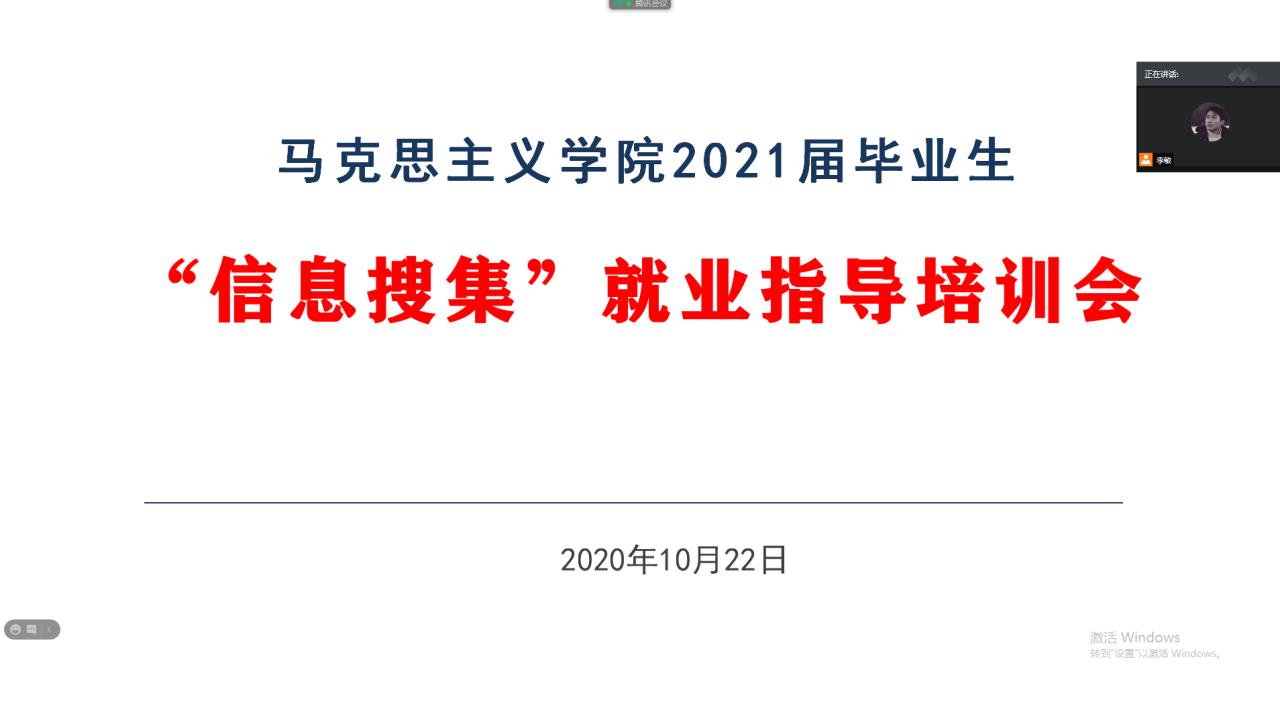 为帮助毕业生高效精准获取就业信息,实现高质充分就业,永利y23455于10月22日晚七点通过腾讯会议开展了2021届毕业生“信息搜集”就业指导培训会议,就业专干李敏和全体2021届毕业生参加培训。
