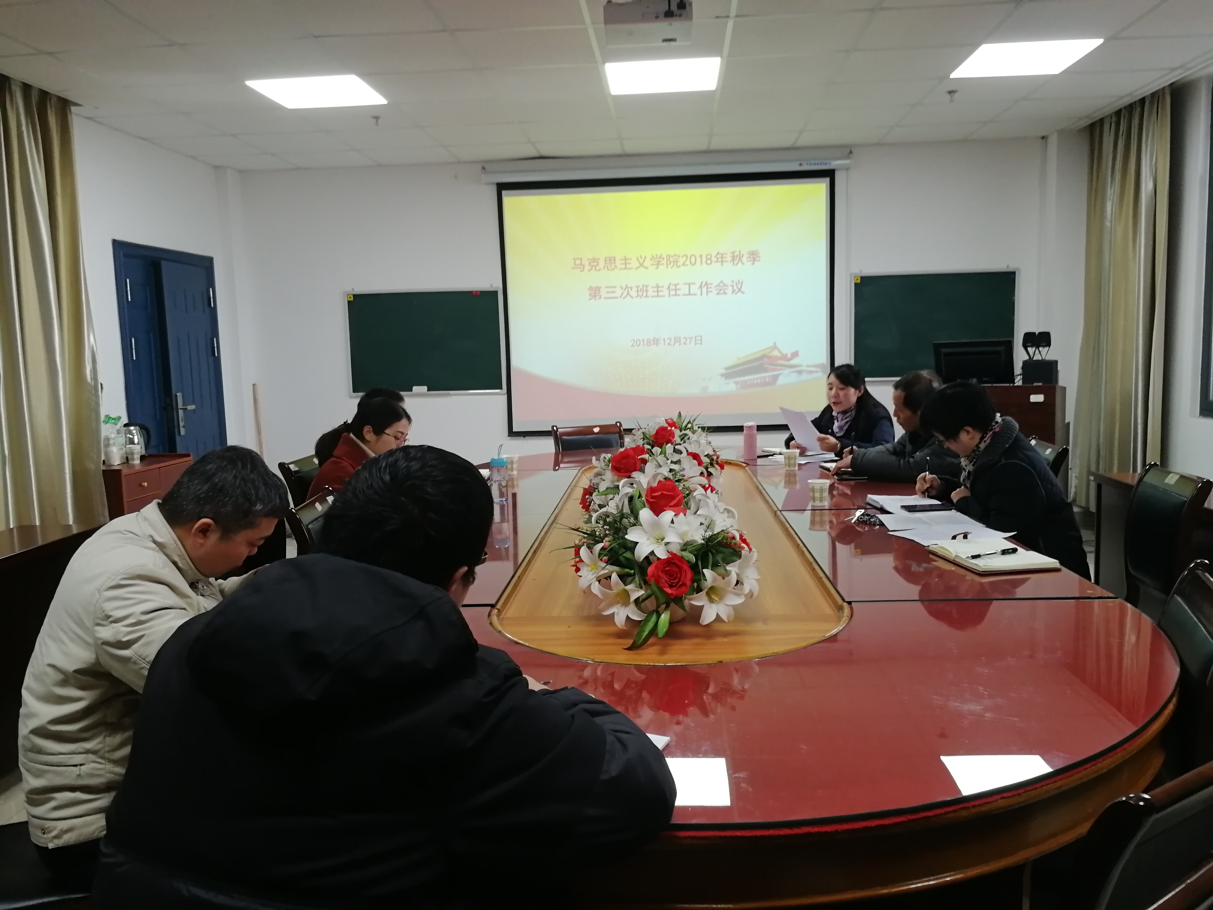 永利y23455于12月27日下午2点半在文科楼1125会议室召开本学期第三次班主任工作会议。参加本次班主任会议的有永利y23455党委书记吴智勇老师、永利y23455党委副书记马小佼老师以及马院全体班主任。会议由永利y23455党委副书记马小佼老师主持。
