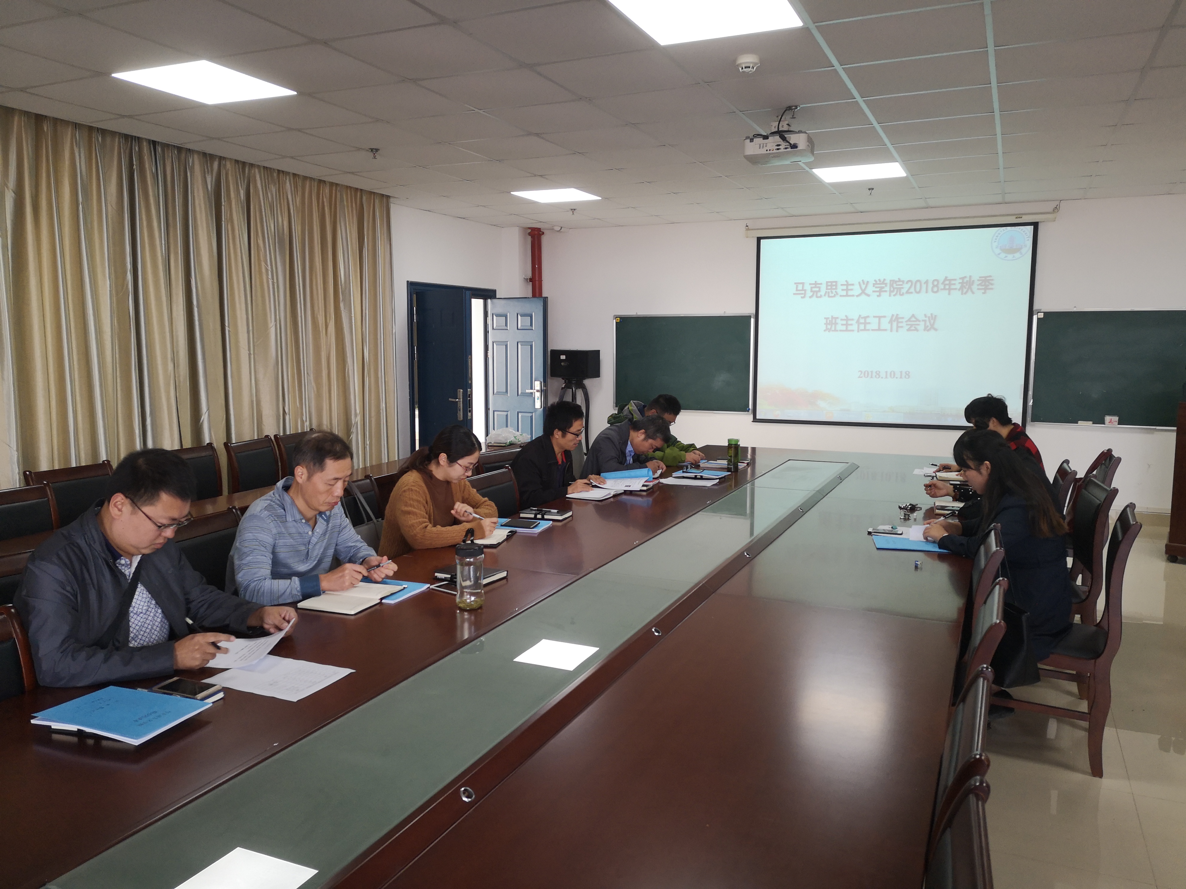 永利y23455于10月18日下午2点在文科楼1104会议室召开本学期第一次班主任工作会议。参加本次班主任会议的有永利y23455党委书记吴智勇老师、永利y23455党委副书记马小佼老师以及马院全体班主任。会议由永利y23455党委副书记马小佼老师主持。