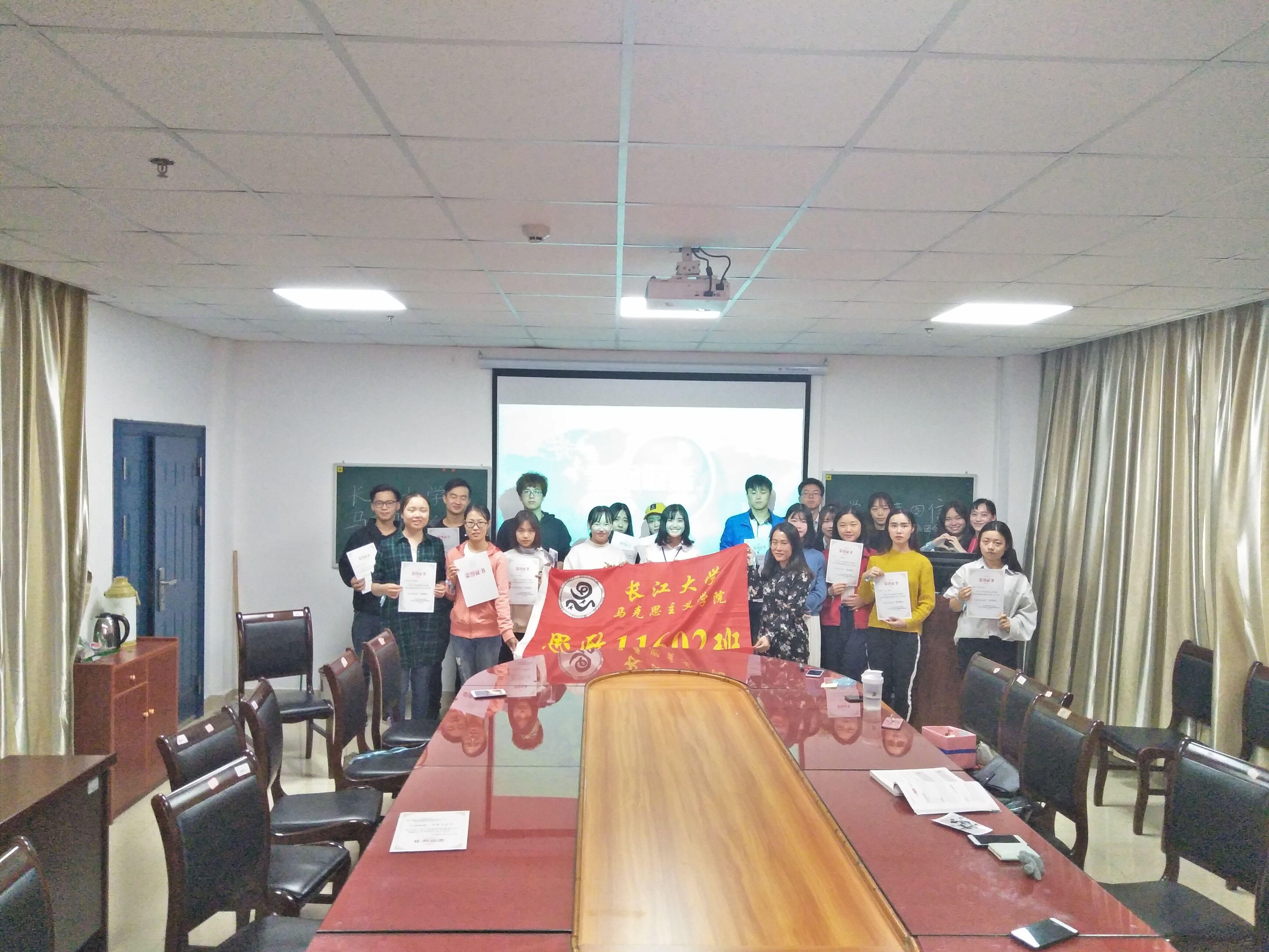 会议的最后主持人总结这次班团会是为了让同学们更加进一步的了解学习贯彻习近平新时代中国特色社会主义思想和党的十九大精神,以及十九大关于习近平的重要讲话“四进四信”。相信思政11602班会不忘初心,砥砺前行。