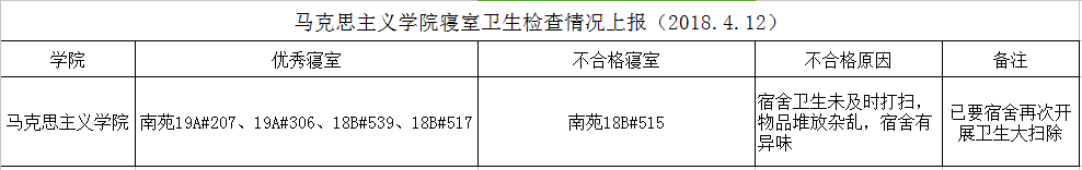 日开展了全院寝室安全卫生大检查,现将检查结果公布如下: