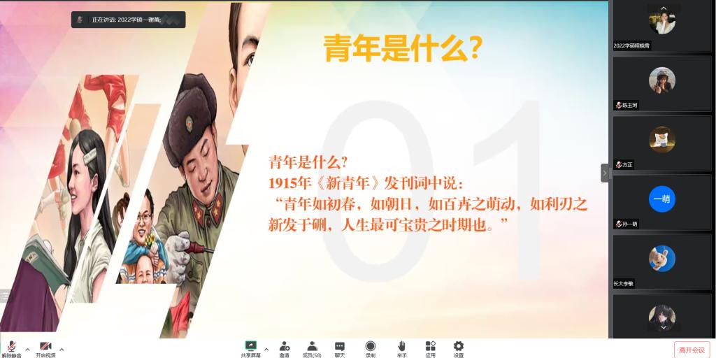(通讯员 薛雯丹)2022年9月9日下午,永利y23455通过腾讯会议召开2022级研究生政治理论学习交流会。学院党委副书记马小佼、2022级全体研究生参加会议,辅导员李敏主持会议。