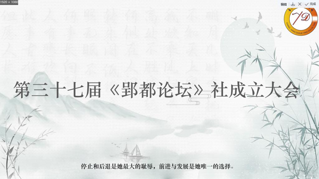 (通讯员 蔡锐) 2022年11月18日晚七时许,yl23455永利集团第三十七届《郢都论坛》社成立大会通过腾讯会议线上举行。永利y23455副教授汤波兰,社团社指导老师彭孝光,青年教师何波,学工办主任张云雾老师,团委书记李敏老师参加会议。李敏对社团2022年工作进行总结并对社团进一步发展给出建议。