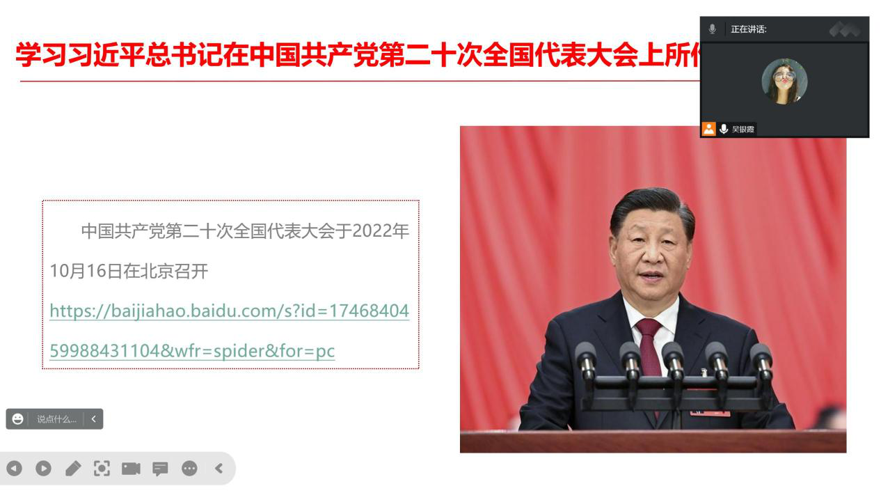 本次主题团会各支部均在线上展开学习。22级两个支部共同学习了党的二十大的主题、议程和意义,进一步了解党的二十大相关内容,强调了青年工作的重要性,表明了青年与时代的深刻关系,使同学们对自身承担的时代责任有了更清晰的认识;21级两个支部紧紧围绕“学习二十大,争做新青年”团会主题,多角度地解读了党的二十大精神,激励同学们为实现党的二十大确立的目标团结一致、努力奋斗;20级支部的团会通过主讲人细致生动地讲解,同学们对理论知识和实践内容有了更加深刻的了解,进一步增强了同学们的责任意识,化精神为动力,努力谱写新时代青年的宏伟篇章;19级两个支部引导同学们学习新思想,把握新动态,在思想上深刻认识党的二十大的重大意义,同时倡导大家促进自身德智体美劳全面发展,以最好的自己来创造美好未来;研究生支部激励全体团员向模范学习,感悟永远听党话、跟党走的初心使命,积极投身于建设中国特色社会主义的伟大事业之中。同时,各支部均开展了学习宣传贯彻党的二十大精神全省大中小学生线上答题活动,此次活动提高了同学们的理论知识水平,教育引导同学们积极拥护党的路线方针政策,做有理想、有道德、有文化、有纪律的四有青年。