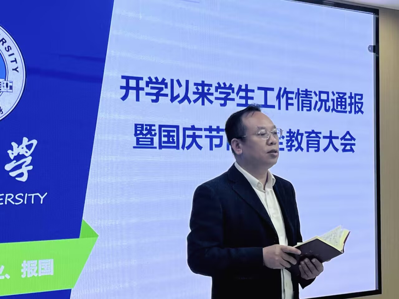会上,张云雾通报了开学以来迎新、军训、日常管理、资助、就业、心理健康、团学工作等学生工作进展情况,开展了国庆节前安全教育,并就《永利y23455普通本科生奖助学金管理办法》进行了解读,部署了2024-2025学年学生工作先进集体和先进个人评选工作。随后,邓鹏老师重点就研究生国庆假期安全稳定工作进行了强调,要求全体学生干部切实履行提醒与监督职责,全力保障广大同学平安度过假期。